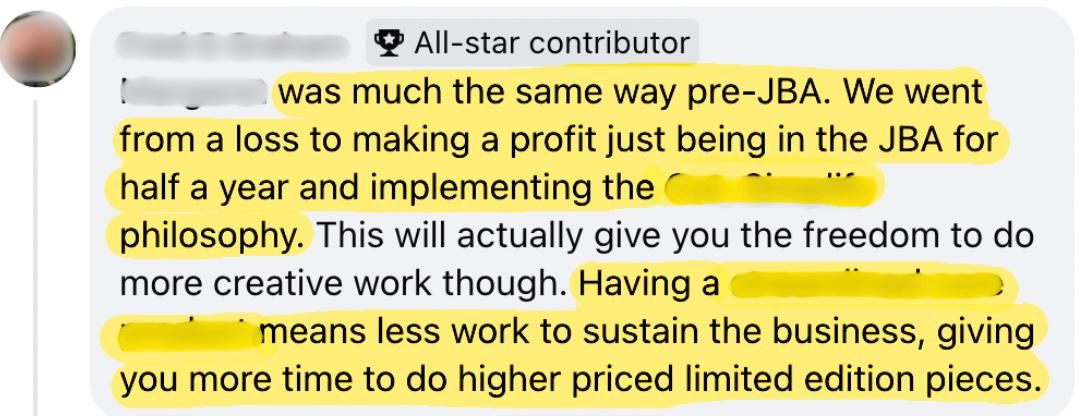 >>> Went from a LOSS to a PROFIT within 6 months of joining the JBA