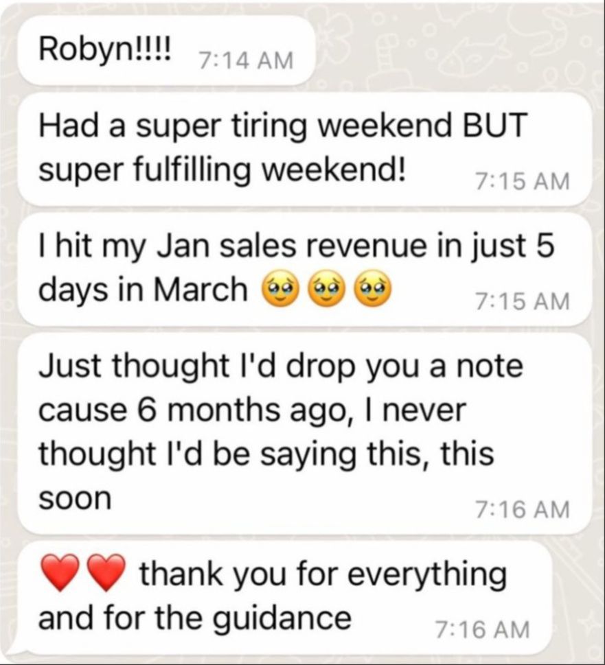 >>> Working with Robyn has been one of the best investments I’ve ever made for my business.